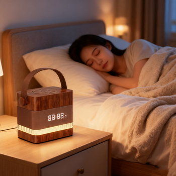 Altavoz de despertador con luz inteligente 3 en 1, máquina de ruido blanco, dispositivo para dormir, reloj despertador, alimentado por USB, acero inoxidable, uso doméstico